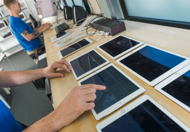 Outsourcing is bij LiveRental geen optie. Om onze cliënten te verzekeren van feilloze apparatuur en service, is het nodig te beschikken over een groot aantal eigen tablets en computers. Dankzij ons enorme informaticapark zijn we altijd in staat onze cliënten de apparaten te geven die precies passen bij hun behoeften, hun applicaties en hun accessoires. Dit grote park stelt ons ook in staat grote aantallen moeilijk op de markt verkrijgbare nicheproducten te verhuren, zoals de iPad Mini of Surface Pro-tablets. Bovendien kan LiveRental op heel korte termijn voorzien in de behoeften van cliënten op zoek naar een groot aantal iPads en laptops te huur.